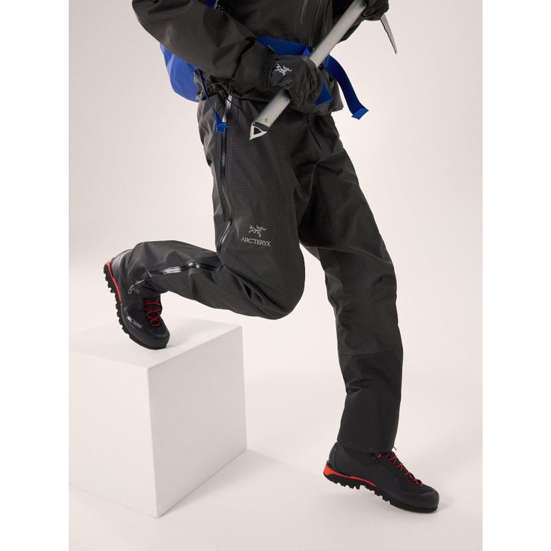 Setting a standard for light, durable protection, the Alpha is made for confident travel in rugged, unpredictable alpine environments. Made with waterproof, windproof, breathable 3L GORE-TEX with our ultralight, ultra-durable Hadron™ LCP (Liquid Crystal Polymer) grid face fabric, the Alpha’s abrasion resistance rivals pants made with much heavier materials. The innovative waist cinch holds fast and rides easily under a harness or hipbelt, and full side zips make on-and-off easy.