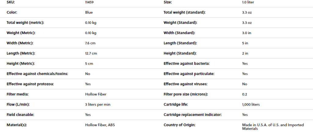 - Ultralight & Compact: The entire system (filter + reservoir) weighs just 3.3 oz (95 g) and packs smaller than a rolled-up t-shirt.