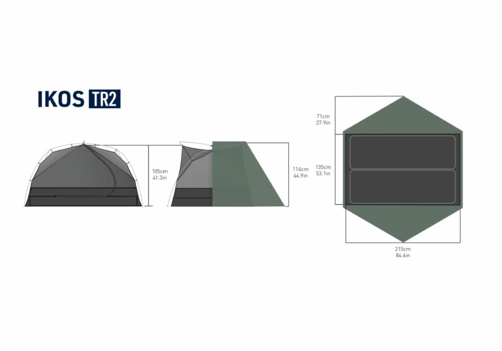 Building on the design advances made in our award-winning ultralight Telos Tension Ridge tents, Sea to Summit introduces the Ikos TR 2 Tent, which offers the same great liveability and versatile setup options for everyday backpacking and vehicle-supported camping. The Ikos features typical Sea to Summit material quality and attention to detail. Four inner pockets and two gear lofts provide plenty of storage space, while machined-aluminum pole feet/rainfly C-clips make pitching easy. A DAC MX poleset supports a 68D polyester ripstop rainfly that is flame retardant-free and treated with a C0 non-PFC DWR. The rectangular floor (large enough for two regular rectangular sleeping mats) is a 68D polyester with a 4,000mm hydrostatic head; a footprint which extends to the tips of the vestibules is available. Spread out in this amazingly spacious home away from home.